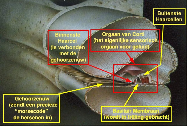 zien zijn. In de middelste kamer bevindt zich het Orgaan van Corti, wat
