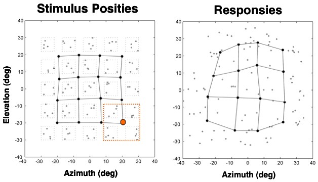 In het linkerplaatje zien we de verdeling van de verschillende stimulusposities