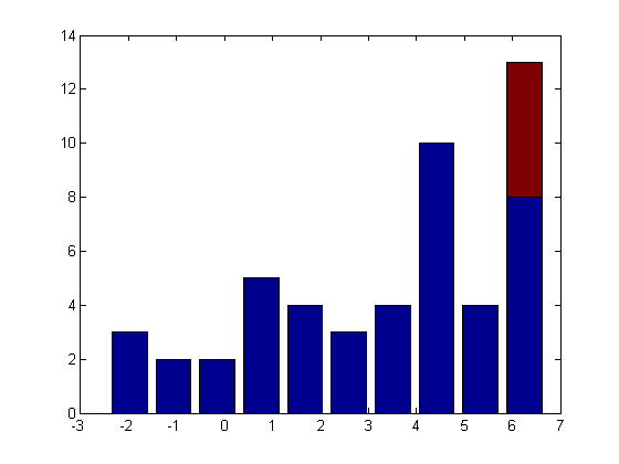 bar(binCtrs,[uncensCnts' censCnts'],'stacked');